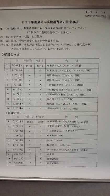 夏休み小中連携英検講習会 閉講式