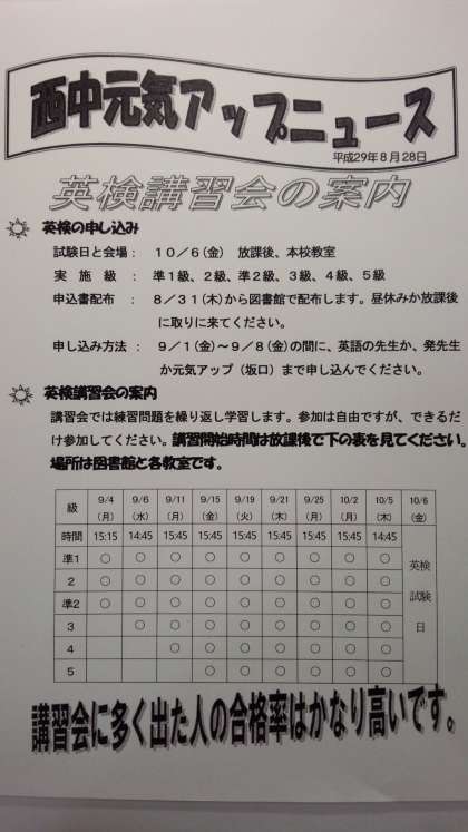 9月の英検講習会についての案内です。