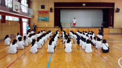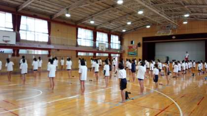 まずは、体育館に集合、ラジオ体操、忘れ物点検です。