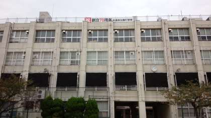 70周年の垂れ幕(横型)も、体育大会に向けて、屋上イオン側から、運動場側に、管理作業員さんによって吊るし換えていただきました。