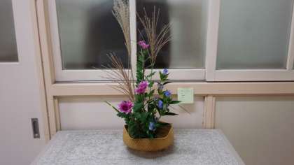 今日のお花は、タカノハススキ、二輪菊、りんどう、です。