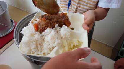 今日は、子どもたちお待ちかねのカレーライスの日です。