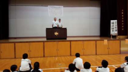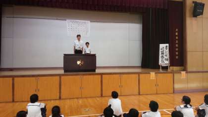 まずは、会計候補1年3組福澤くん、応援演説1年3組畑田くんです。
