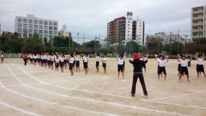 続いて2時限目には、70周年記念3年生団体演技「団結」練習です。