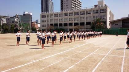 3時限目の、3クラス合同の体育の授業での練習の様子です。