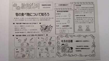 給食だより10月号を配付しましたので、ぜひご覧ください。