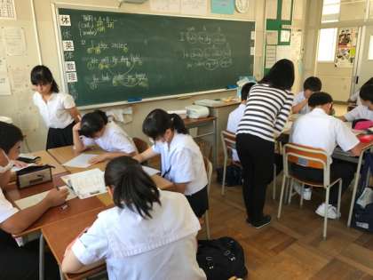 今日は通常授業で習ったものを復習しました。最後に行ったワークシートには少しひっかけ問題のようなものもあり、なかなか難しかったようですが、グループワークで知恵を出し合って答えを出していましたよ。