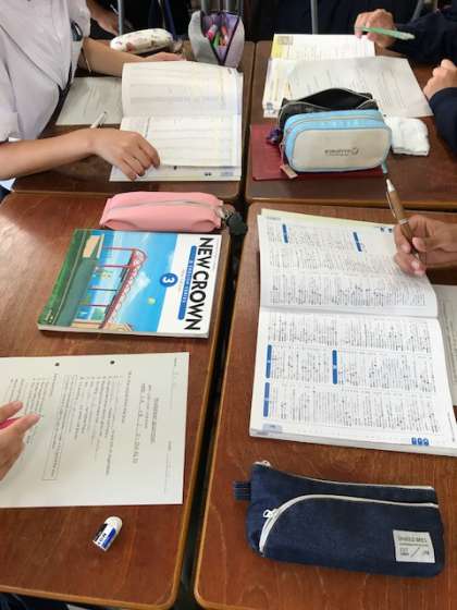 先々週に行われた3年生の英語の授業ですが、2組だけずれてしまいましたので、本日写真をアップします。