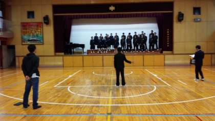 3年生は、クラスごとに体育館で合唱コンクールの練習です。