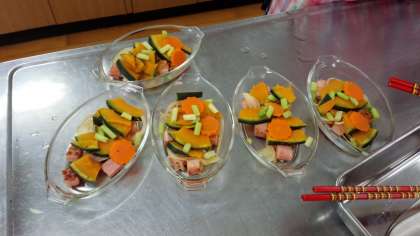 まず、アスパラガスとかぼちゃを切って、ゆでます。