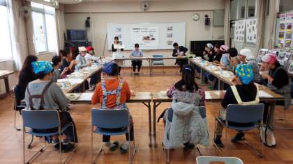 そして、九条北小学校の栄養教諭の田坂先生から、大阪市の学校給食、食育についてお話をいただきました。