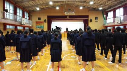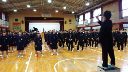 最後に、3年生の指揮、ピアノで、全校合唱です。