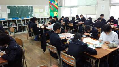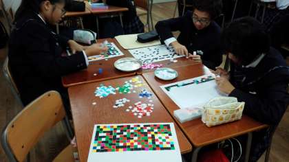 1年生は、昨日もお伝えした「巨大モザイク画」作りです。