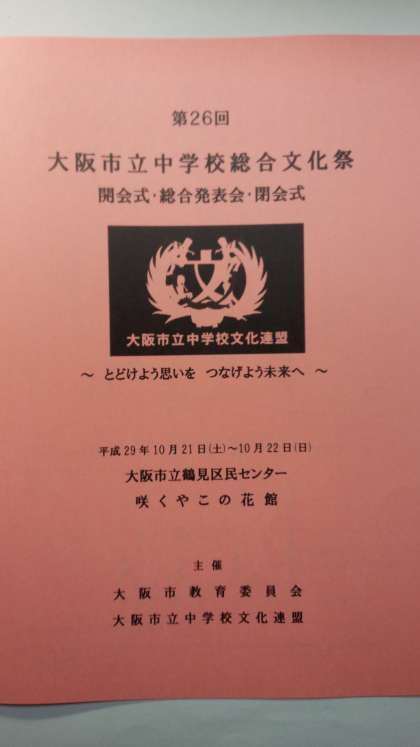 10月21日(土)22日(日)、大阪市立鶴見区民センターにおいて、「大阪市立中学校総合文化祭」が開催されました。