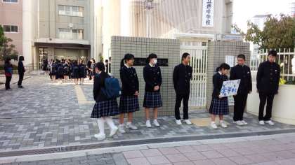今日も、生徒会役員のみなさんが、正門で朝早くから呼びかけてくれています。