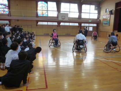 車椅子バスケットボールの競技説明やルールを説明していただきました。
