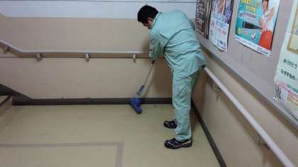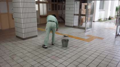 いつも通り、生徒の登校後、すぐに、管理作業員さんが廊下、階段の傘のしずくを綺麗にふき取ってくださっています。