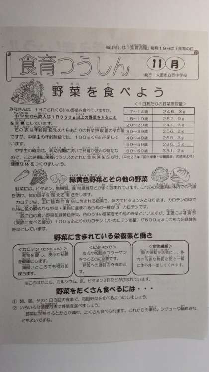 ご一読いただき、ぜひご家庭でも「食育」について、お子さんとお話しくださいますようお願いします。