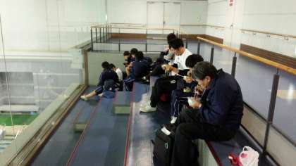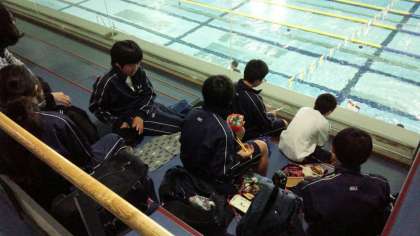 先生たちと一緒にプールを見ながら優雅な気分で昼食をいただきます!