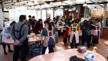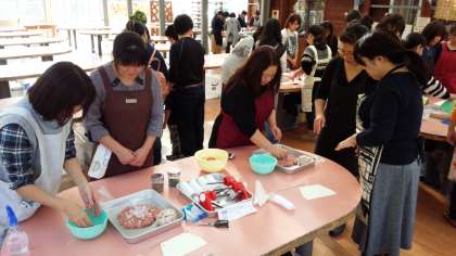 伊賀の里 モクモク 手づくりファームに到着し、さっそく、手づくりウインナーづくりに挑戦です。