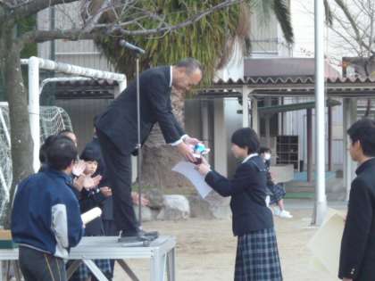 つづいて、12月3日に開催された、バレーボール部大会の賞状の伝達です。