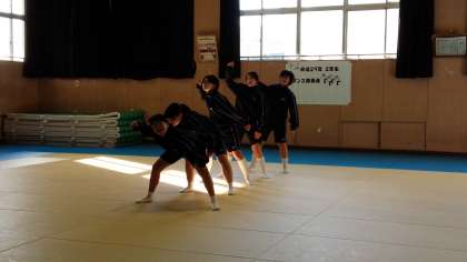 まずは、1時限目、2年3組の体育の授業での、各班のダンスの発表の様子です。