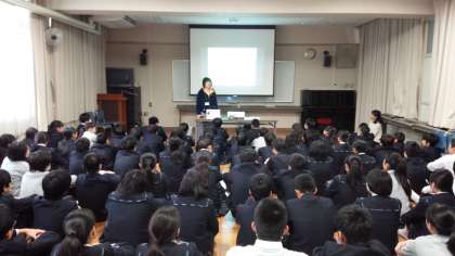 本日5,6時限目、多目的室において、2年生性教育の授業を、保健室の上田先生、スクールカウンセラーの瓦田先生にしていただきました。