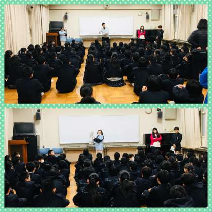 第1学年 学年集会(多目的室にて)