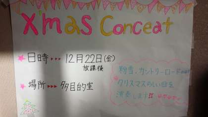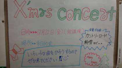 恒例の吹奏楽部クリスマスコンサートが、いよいよ明日となりました。