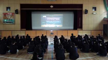 1年生は、昨年度の「3年生を送る会」のDVDを見ました。