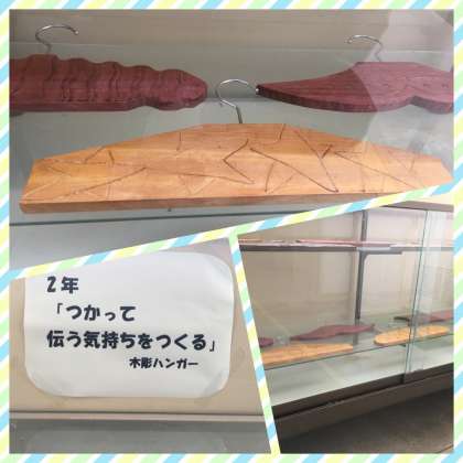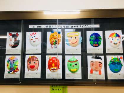 職員室前に生徒の作品が飾られています。どれも個性豊かですばらしい出来です。