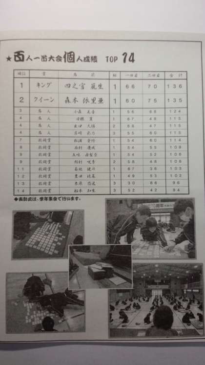 2年生学年だよりに、1月19日(金)に実施した「百人一首大会」の結果を載せていますので、ご覧ください。