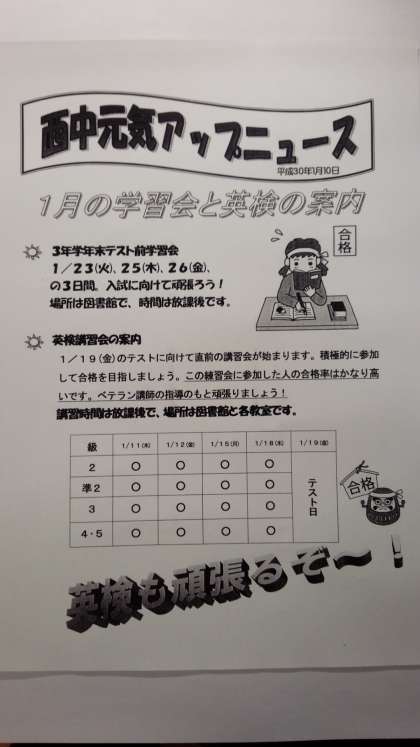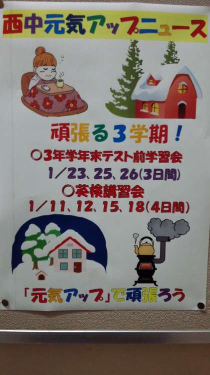 3年生にとって、いよいよ中学校生活最後の定期テストです。がんばりましょう!