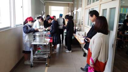 本日、来年度から親子給食が始まる中学校の先生方が、見学に来られました。