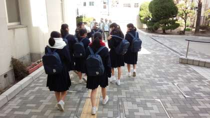 給食、学活後、出願高校ごとに、多目的室に集合、正カバンを置いて、いざ出願に出発です。