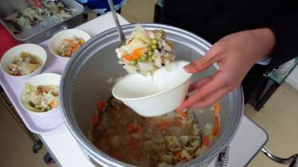 あじのレモンマリネと固形チーズでは、おかずが少ないように思いますが、ご覧のようにスープ煮がとても具だくさんで、お腹いっぱいになりました。