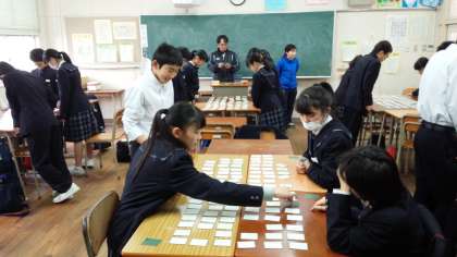 本日、5,6時限目に、1年生百人一首大会を予定していましたが、インフルエンザ流行のきざしが見え始めたため、1月31日(水)の5,6時限目に延期します。