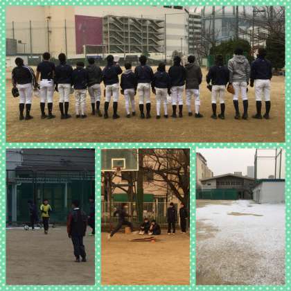 今日は雪が降るくらいに寒かったです。しかし、外の部活動の生徒たちは元気いっぱい頑張っていました。野球部、陸上部、サッカー部と雪が少し積もった様子をお届けします。