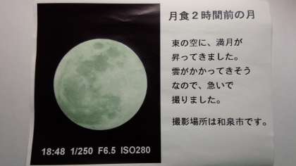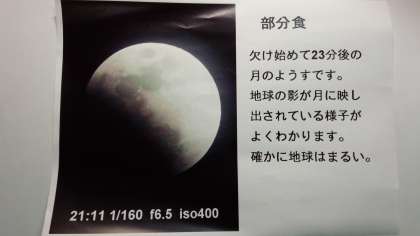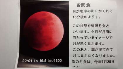 本校理科藤田教諭が撮影した、1月31日(水)の「皆既月食」の写真を、職員室前に掲示しています。