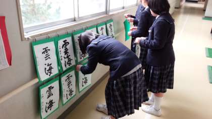 書きあがった生徒から順に、さっそく廊下に掲示していきます。