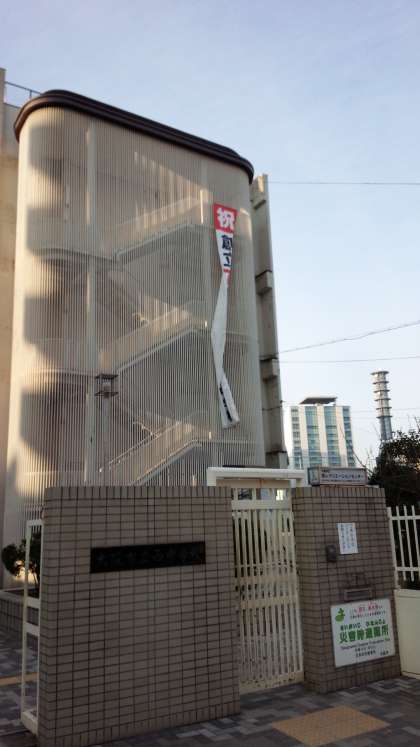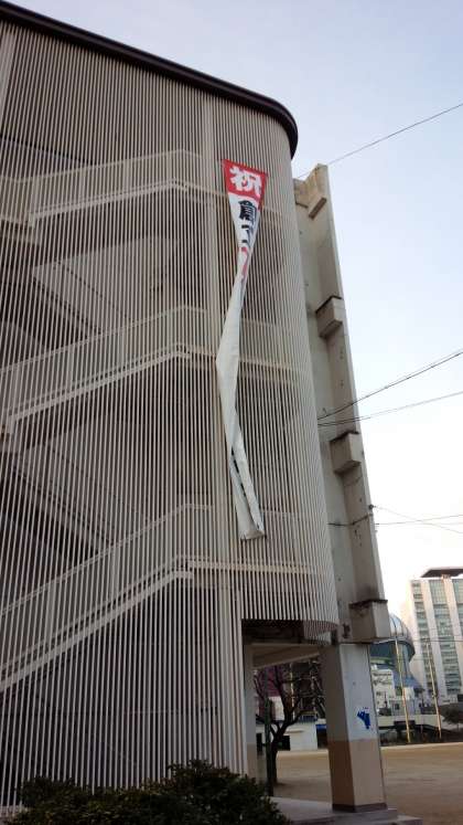 今朝、学校に到着すると、なんと先週修繕を終えて再び掲げていただいた創立70周年記念の垂れ幕が、またしてもちぎれていました。
