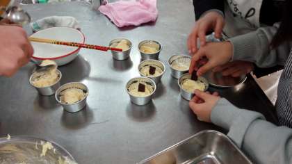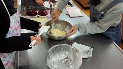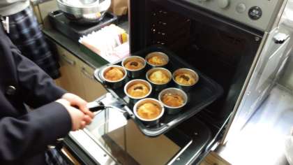 本日4時限目は、1年1組の調理実習、カップケーキ作りです。