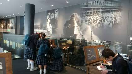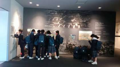 次々と到着した班からピースおおさか見学です。