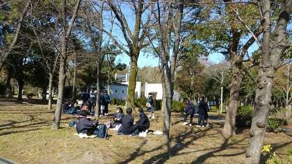 ピースおおさかを見学した班は、ピースおおさか周辺の大阪城公園内でお昼ごはんをいただいています。