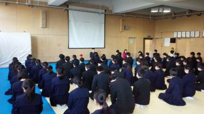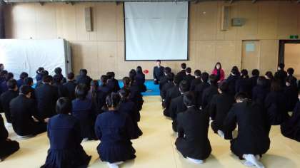 武道場では、3年生の学年集会が行われています。