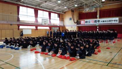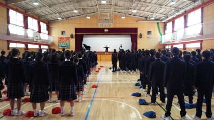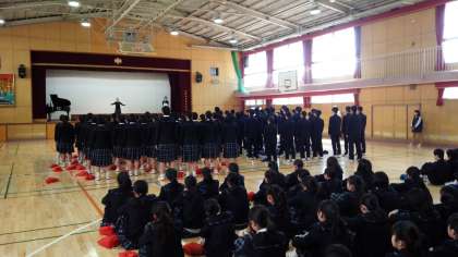 最後に1,2年生合同での合唱練習です。3年生の先輩方を送るにふさわしい歌声を響かせてくれました。