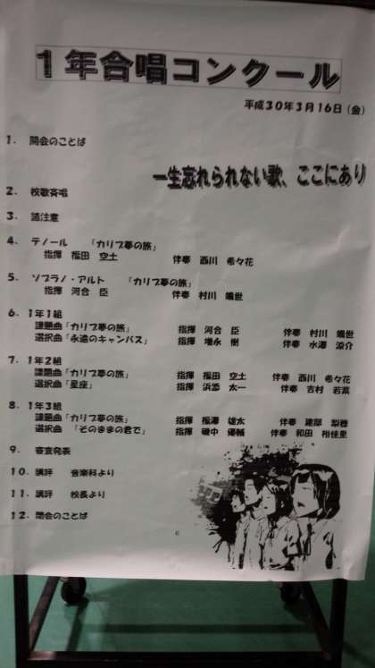 いよいよ、待ちに待った1年生合唱コンクールの日を迎えました。