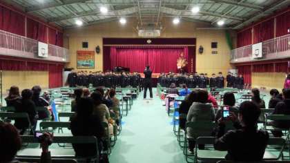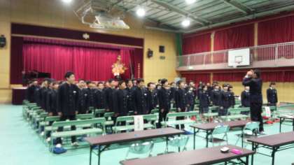 審査を待つ間、保護者の皆さまの方を向いて、自由曲を学年全員で歌い、保護者の皆さまから、惜しみない拍手をいただきました。