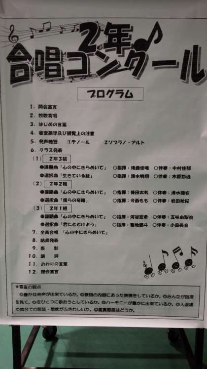 つづいて5,6時限目は、2年生の合唱コンクールです。