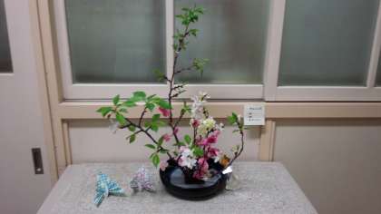 校長室前のお花を、春らしく活け替えてくださいました。